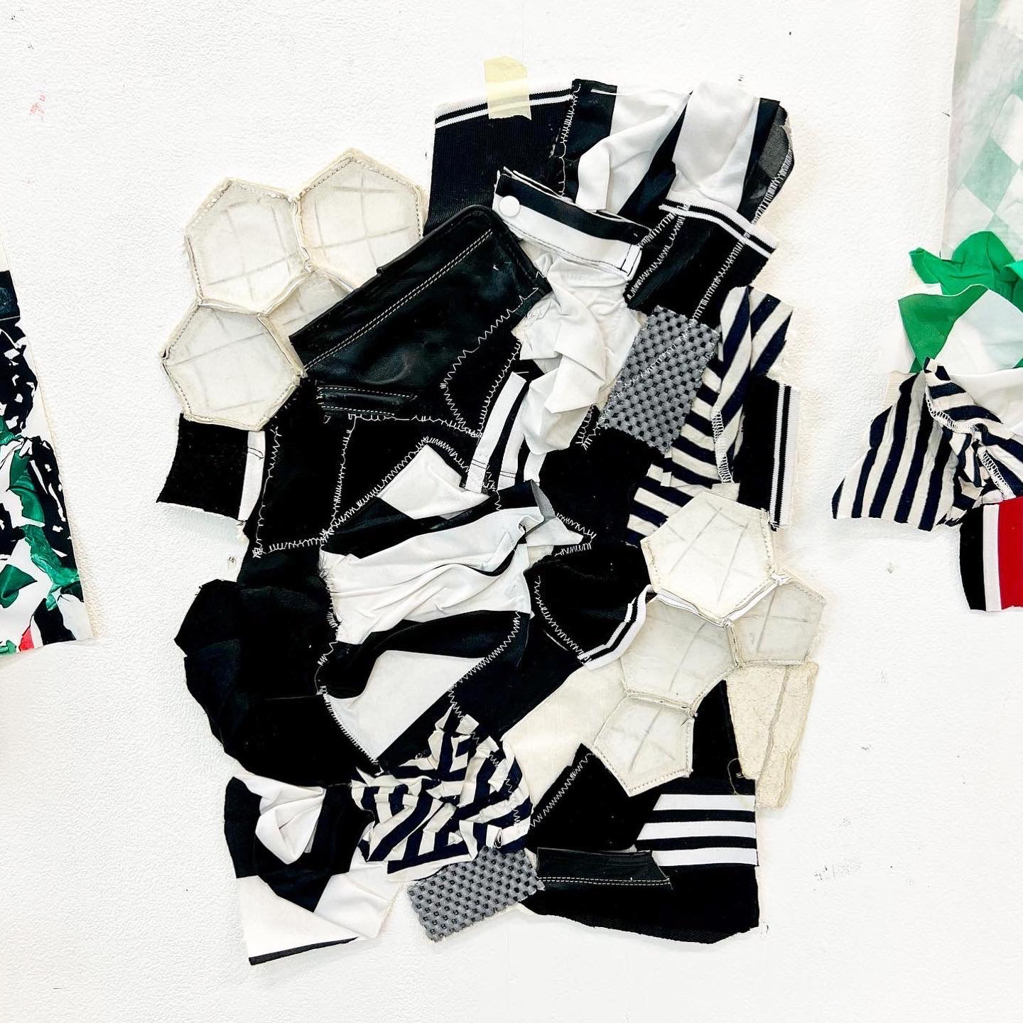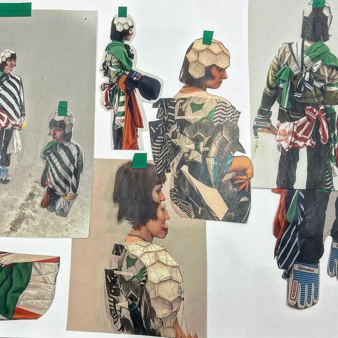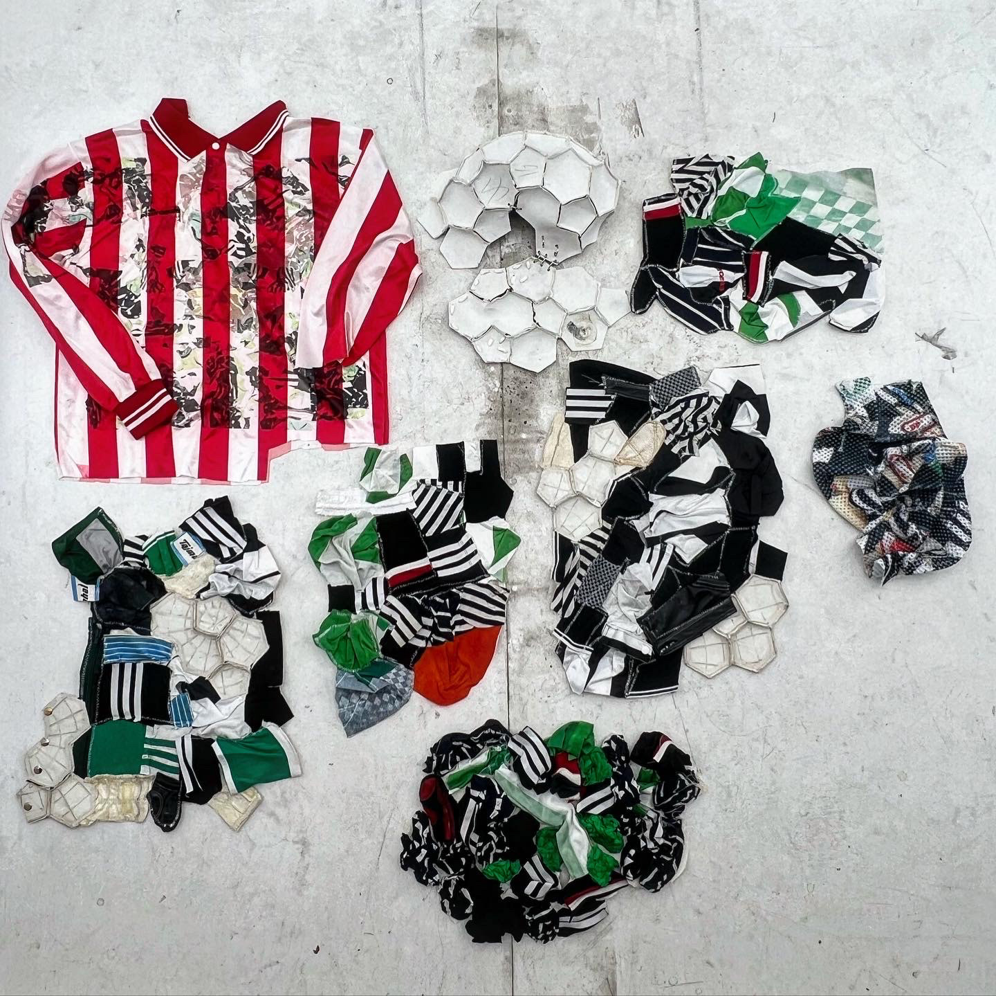 My starting point for my project was looking into the Japanese tradition of Kintsugi which is the smashing and breaking of plates and gluing them back together in golden ways and at the same time embracing imperfections. The idea of embracing broken while highlighting the cracks with gold, is a concept that makes the maker think about the different ways pieces can be connected back together and how humans are not able to control everything. To embrace the flawed or imperfect and to practice to accept the way things are, and let go of control. I will start by breaking materials down and joining them together in experimental/golden ways, while sourcing and collecting dead-stock sportswear. I will then be using my broken down pieces to create scrunched and distorted three dimensional materials and look into the idea of connection through bonding, embroidery and more unconventional methods of joining/finishing.