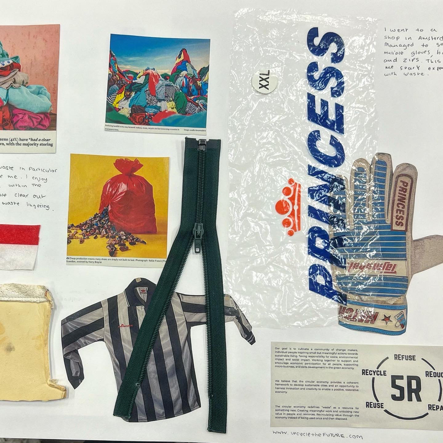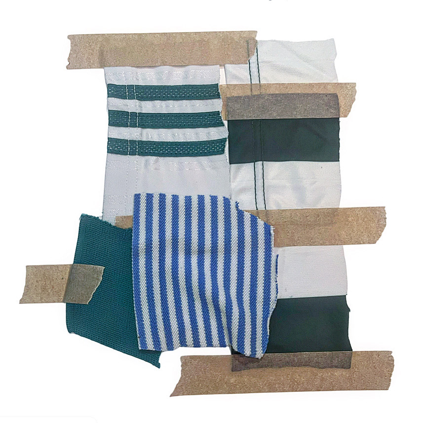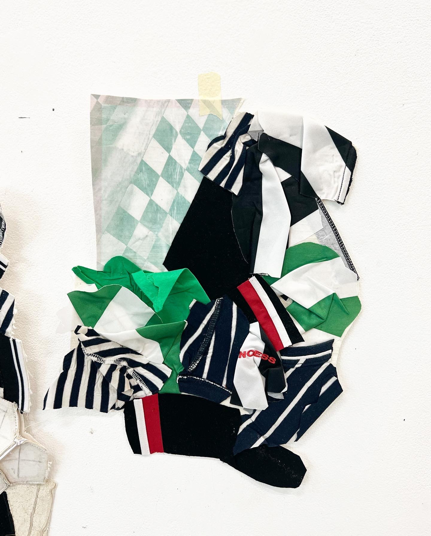 My starting point for my project was looking into the Japanese tradition of Kintsugi which is the smashing and breaking of plates and gluing them back together in golden ways and at the same time embracing imperfections. The idea of embracing broken while highlighting the cracks with gold, is a concept that makes the maker think about the different ways pieces can be connected back together and how humans are not able to control everything. To embrace the flawed or imperfect and to practice to accept the way things are, and let go of control. I will start by breaking materials down and joining them together in experimental/golden ways, while sourcing and collecting dead-stock sportswear. I will then be using my broken down pieces to create scrunched and distorted three dimensional materials and look into the idea of connection through bonding, embroidery and more unconventional methods of joining/finishing.