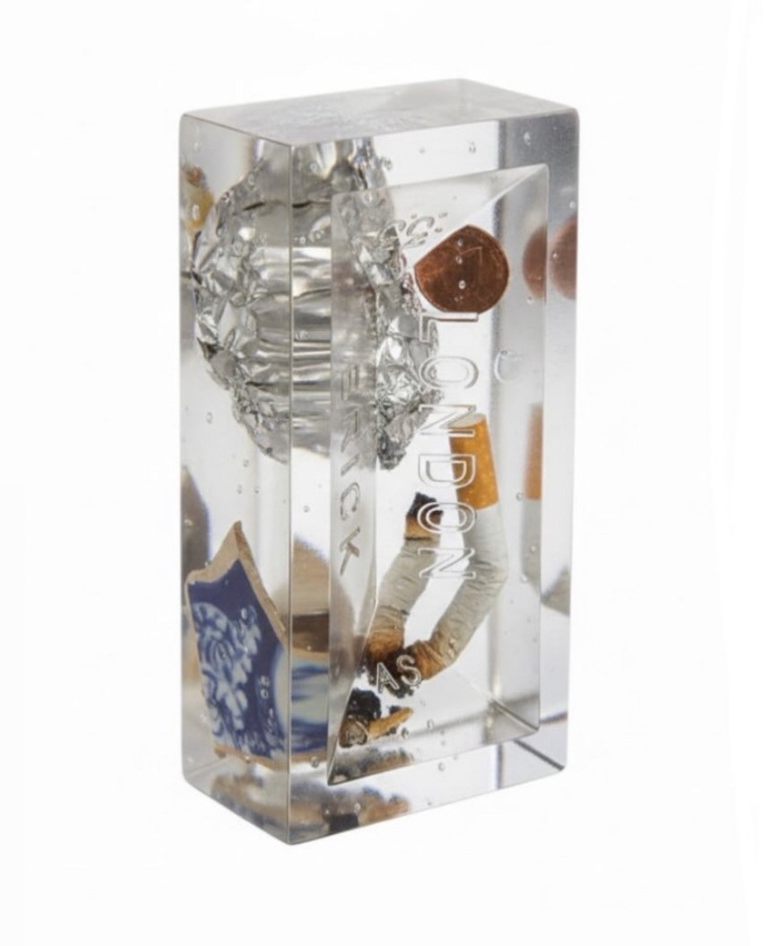 London Shit Brick is a multidisciplinary project that explores the intersection of urban anthropology and sculptural design. By collecting discarded refuse from the streets of London and encasing it in high-gloss resin, I transform the city’s "grit" into permanent, tangible artifacts.