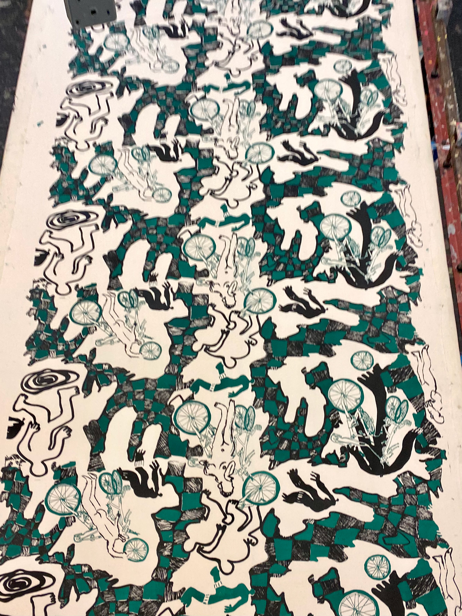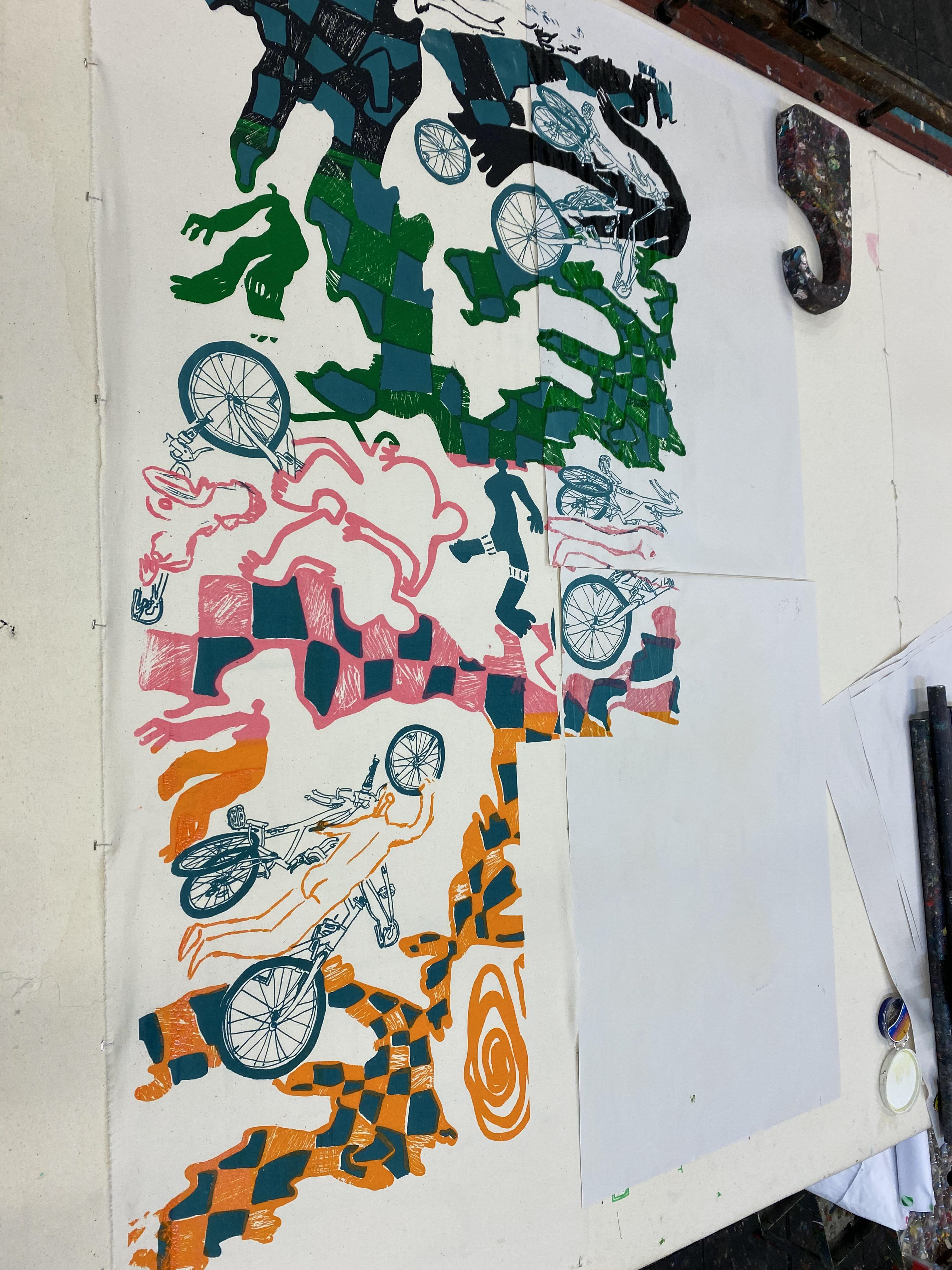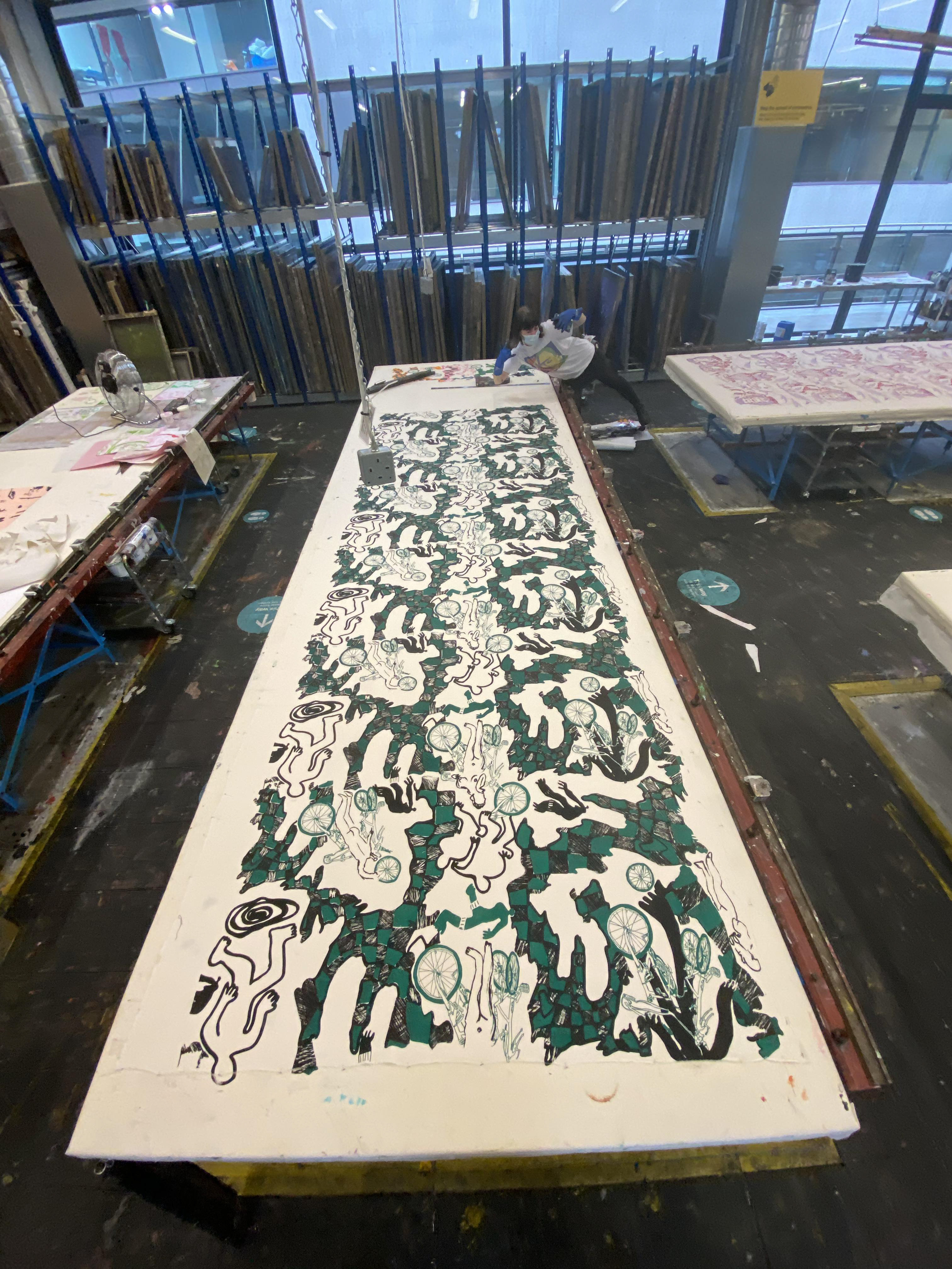 This project was all about getting out and about post lockdown. Gathering drawings and visiting museums in London. A lot of my drawings came from the sculpture courts at the Victoria and Albert Museum. but also Jean Dubuffet's solo exhibition at the Barbican. Once gathered we had to create a hand rendered half drop repeat pattern with our drawings.